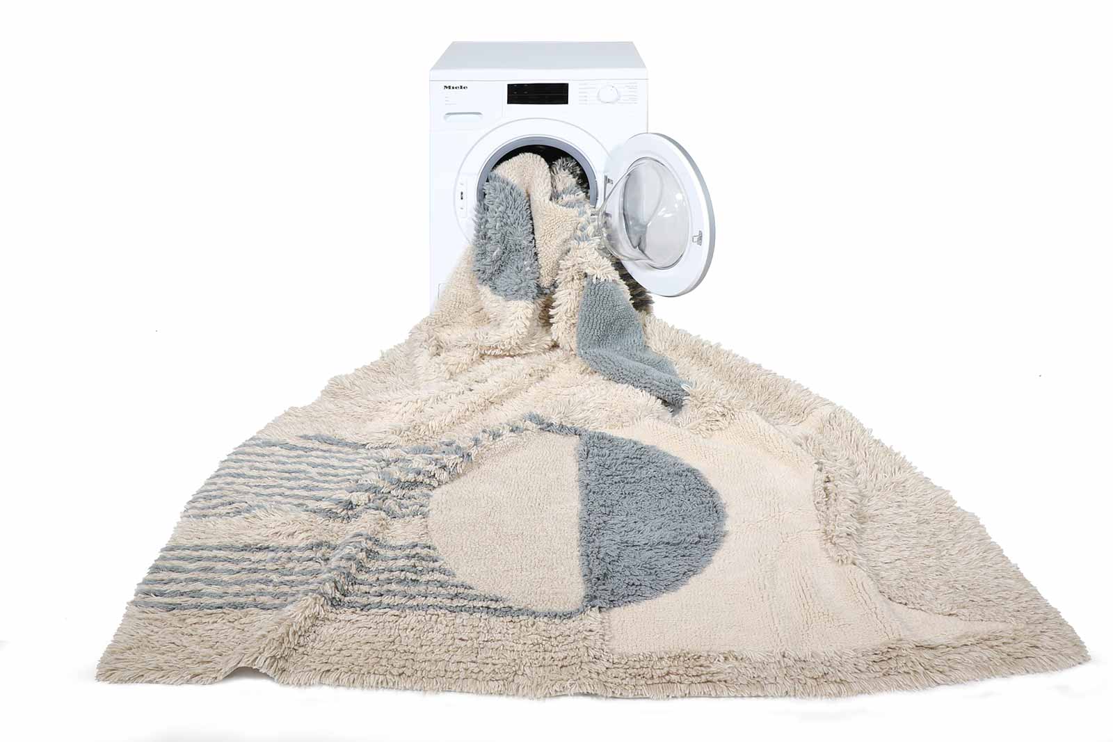 Controleer het op het vloerkleed genaaide label voor de aanbevolen capaciteit van de wasmachine voor elk vloerkleed. Voor deze maat adviseren wij een minimale capaciteit van 13 kg.